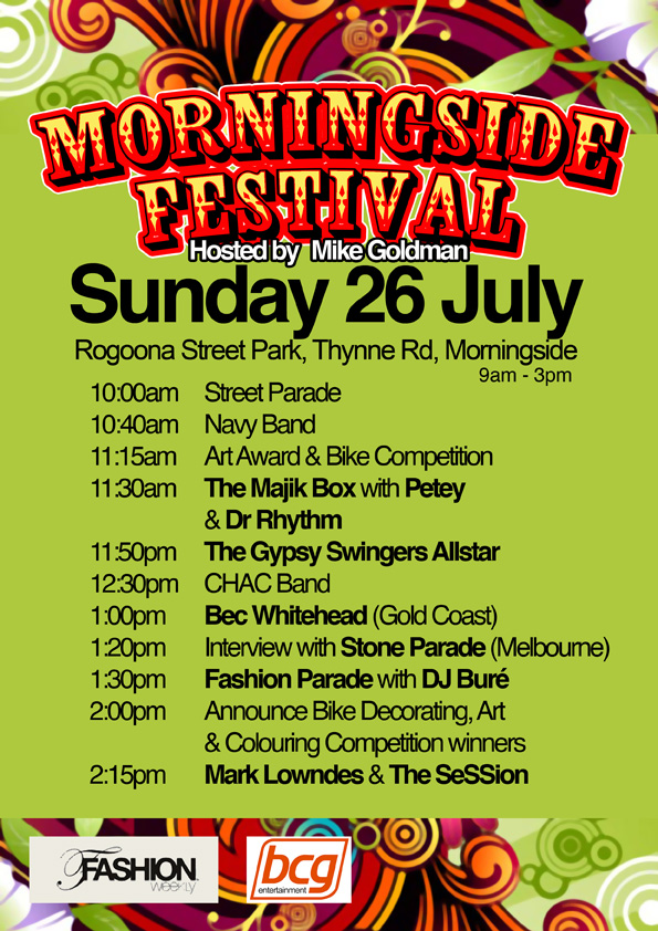 Come on down to the Morningside festival. Its gonna be huge. Fashion parades, art, bands.